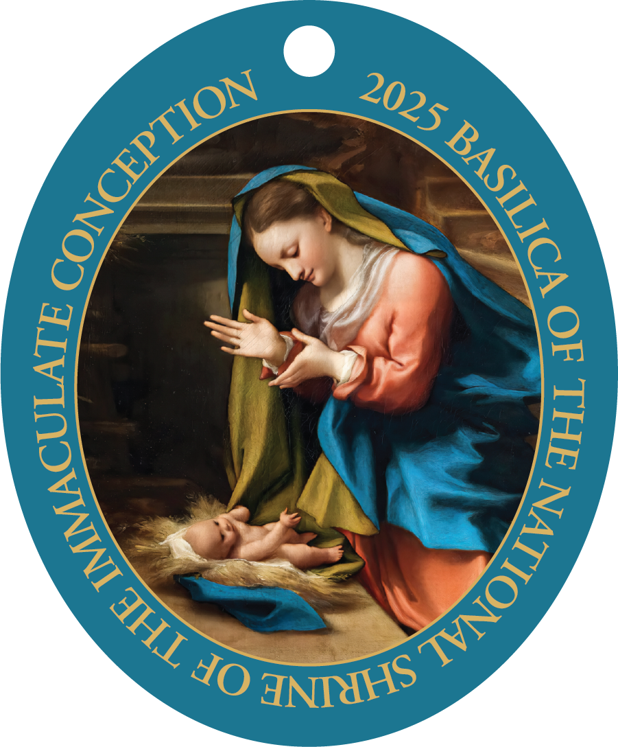 Exclusive to the National Shrine, this striking ornament features a full-color nativity scene of Our Lady and Saint Joseph adoring the Christ Child. To help you prepare for the birth of the Lord, each ornament also includes the "Blessing of a Christmas Tree" prayer for you and your family to pray as you adorn your home.
